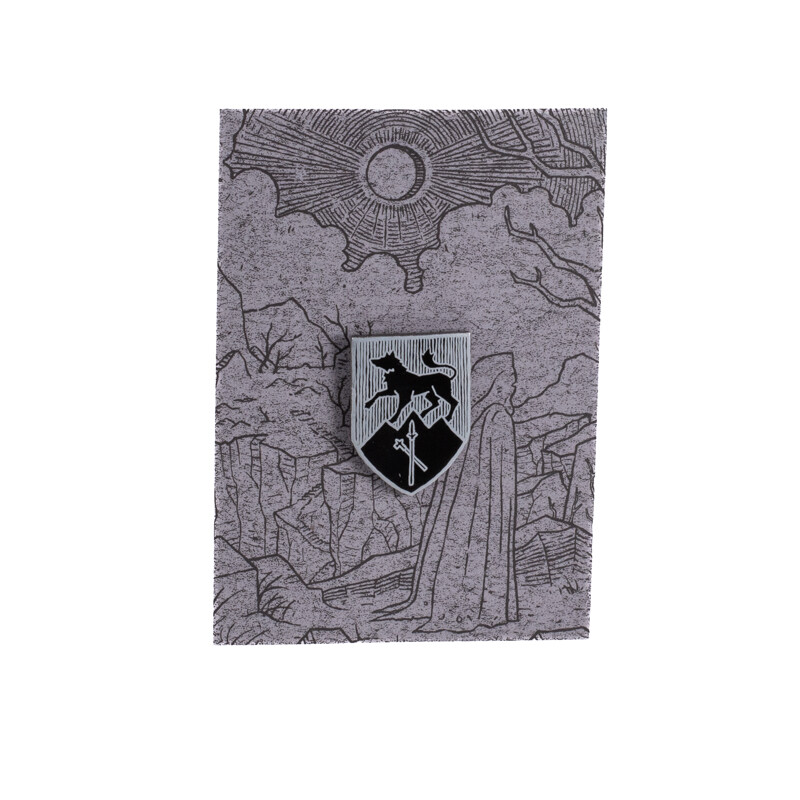 Official VELNIAS black and silver hard enamel pin depicting the crest of the band.