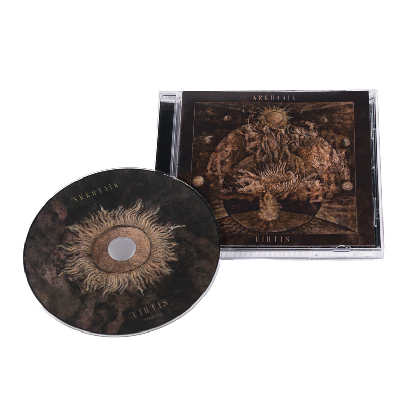 On UIHTIS (the hunt), Arkhaaik - nomen est omen- explore the theme of hunting in a Bronze Age context. The album opts for an unconventional and refreshing approach, allowing it to rise from the ranks of a concept album and ascend to a truly metaphysical, yet distinctly human experience. To achieve this, the act of "the hunt" is explored on two distinct levels: While half of the album is dedicated to the very real act of hunting an animal and the ceremonial slaughter of the sacred creature, the other half takes a different approach by exploring the theme on a transcendental level – here the sun „hunts“ the moon and vice versa.